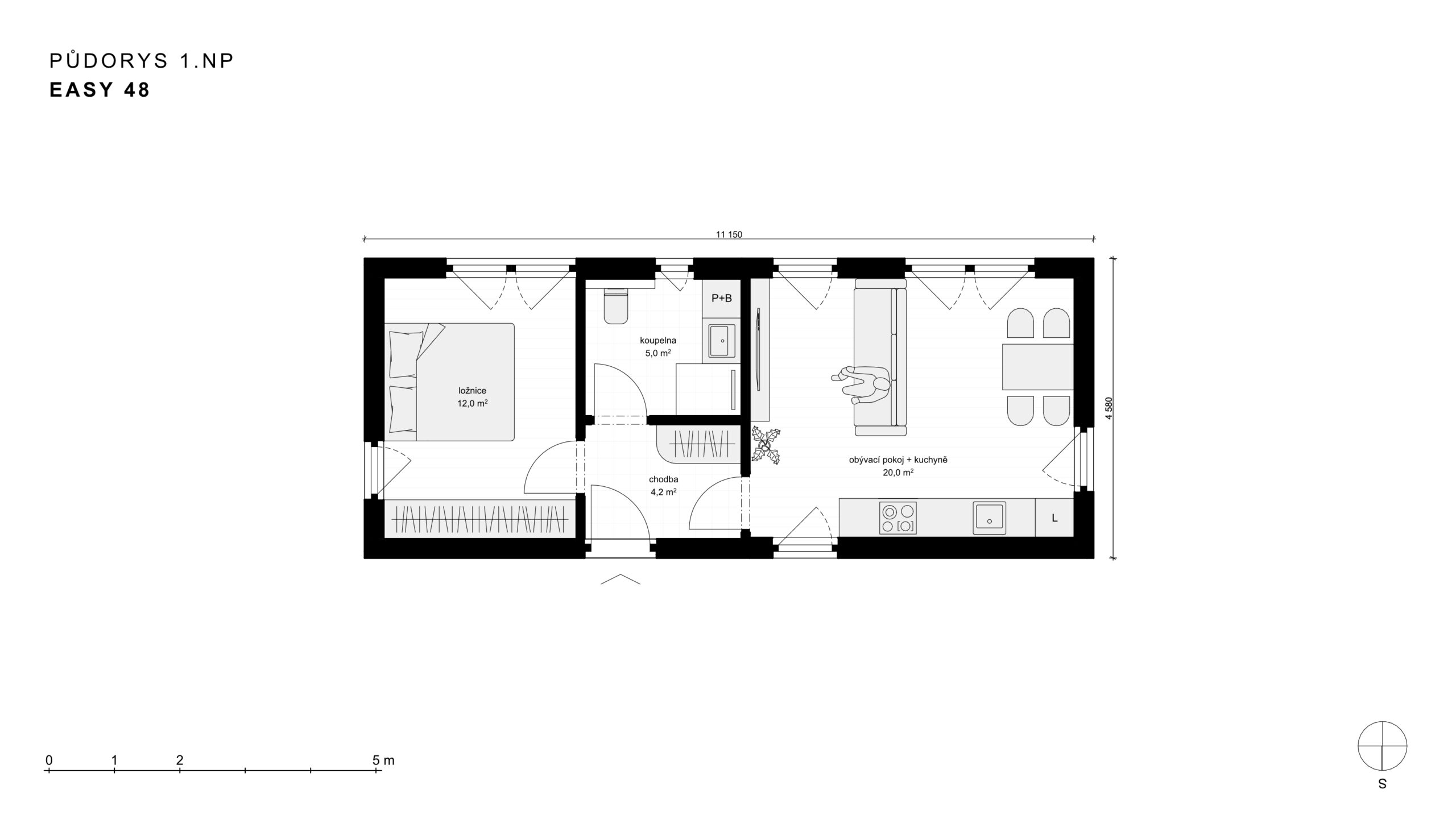 Cena na klíč obsahuje: cenu domu, cenu základů, projekt, režii a vyřízení stavebního povolení.