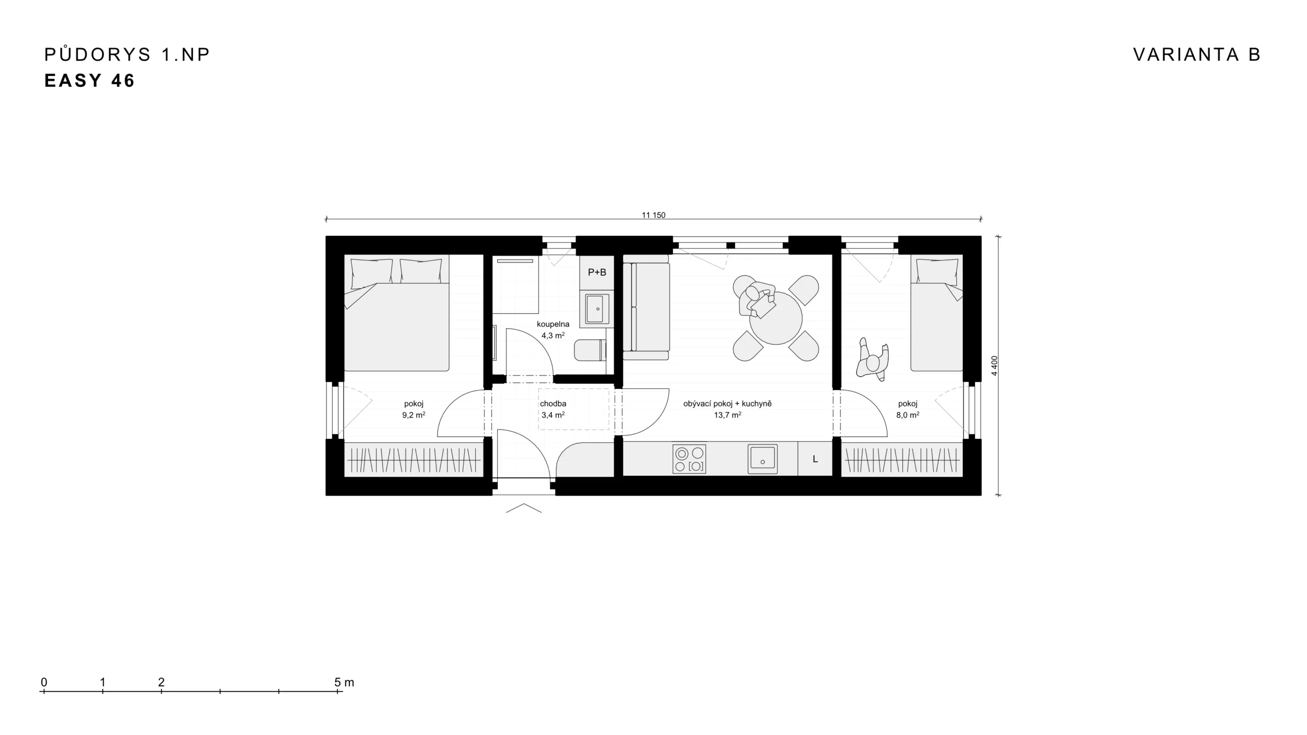 Easy 46 je nejprodávanější z modulových staveb do 50m2.