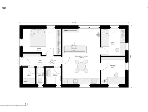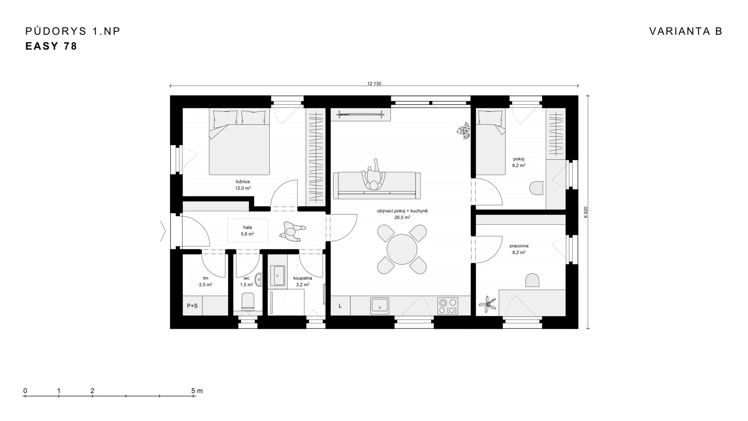 Cena na klíč obsahuje: cenu domu, cenu základů, projekt, režii a vyřízení stavebního povolení.