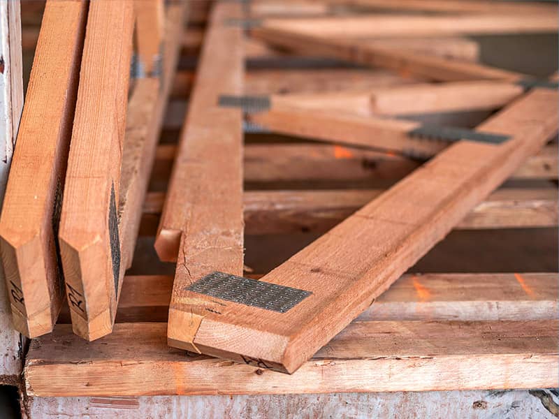 Použité sušené a hoblované konstrukční dřevo přináší vysokou rozměrovou stabilitu a garantovanou pevnostní třídu C24. Výsledkem je lehká, ale mimořádně pevná konstrukce, se kterou se snadno manipuluje a která zároveň vykazuje zvýšenou odolnost vůči biologickým škůdcům.